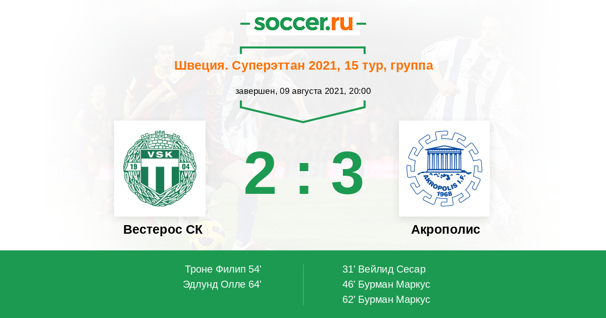 Протокол матча Вестерос СК против Акрополис