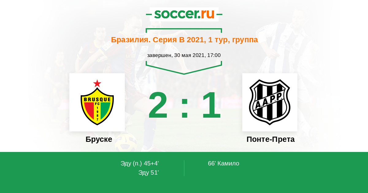 Протокол матча Бруске против Понте-Прета