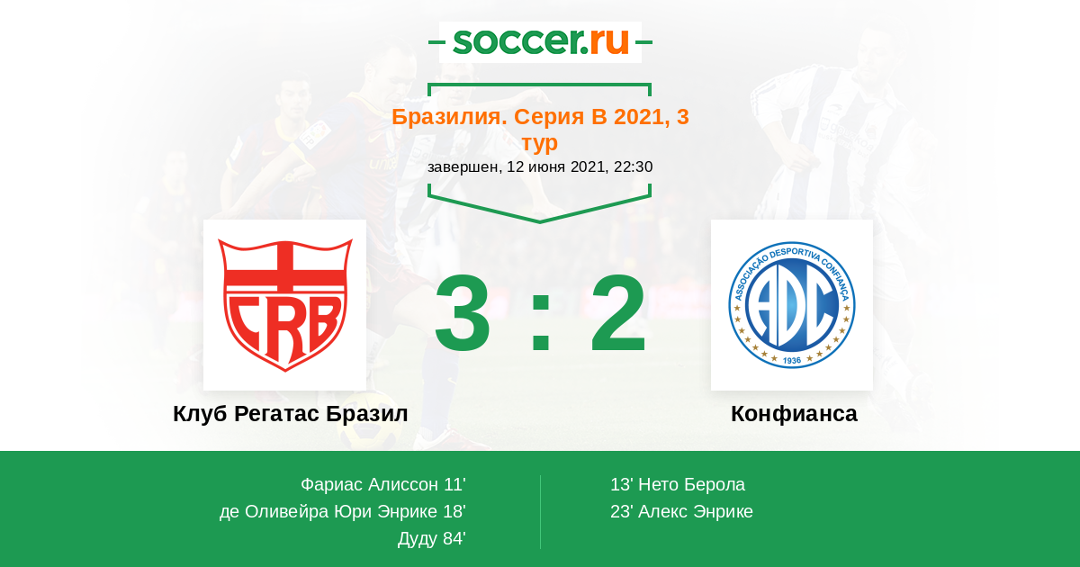 Протокол матча Клуб Регатас Бразил против Конфианса
