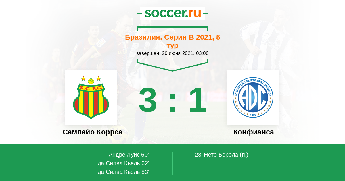 Протокол матча Сампайо Корреа против Конфианса