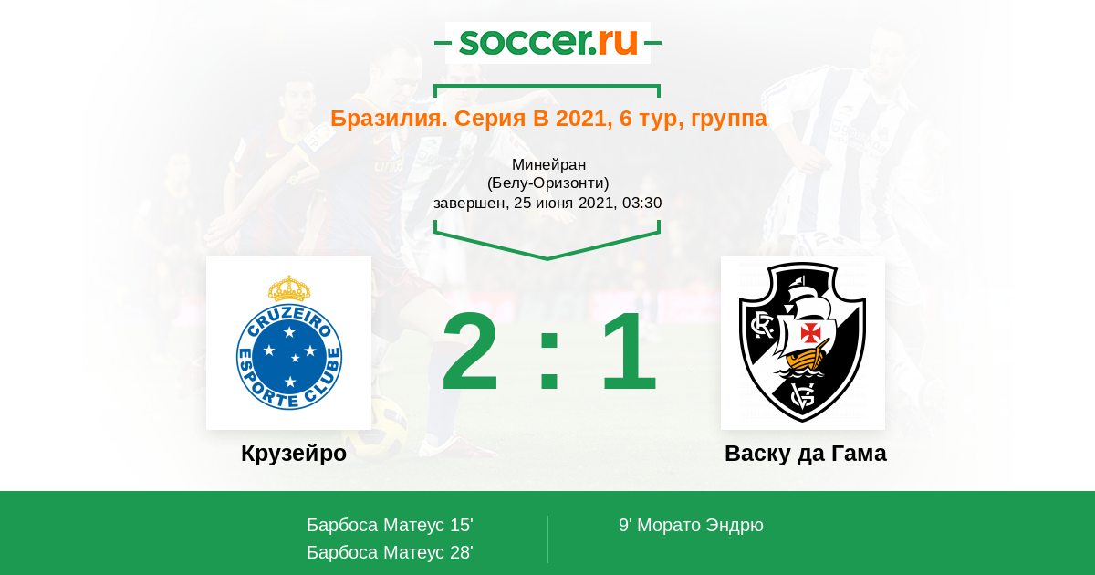 15' (1:1) Барбоса Матеус (17) (Рафаэл Собис (10))