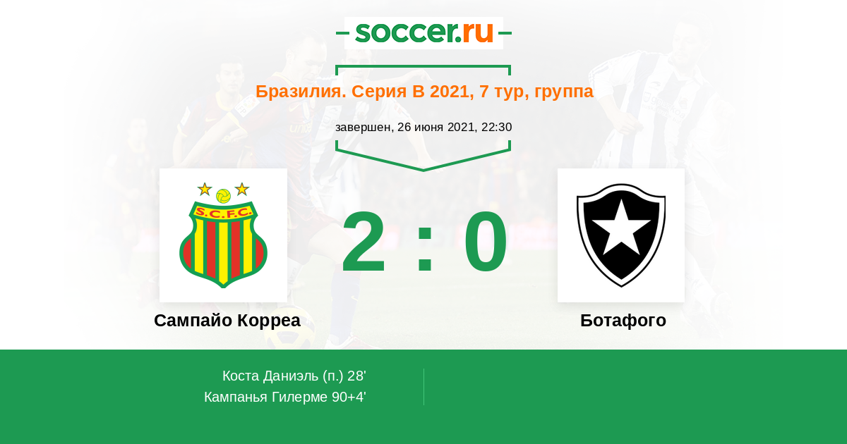 Протокол матча Сампайо Корреа против Ботафого