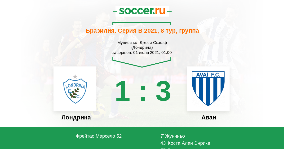 52' (1:2) Фрейтас Марсело (14) (Силва Дуглас (18))