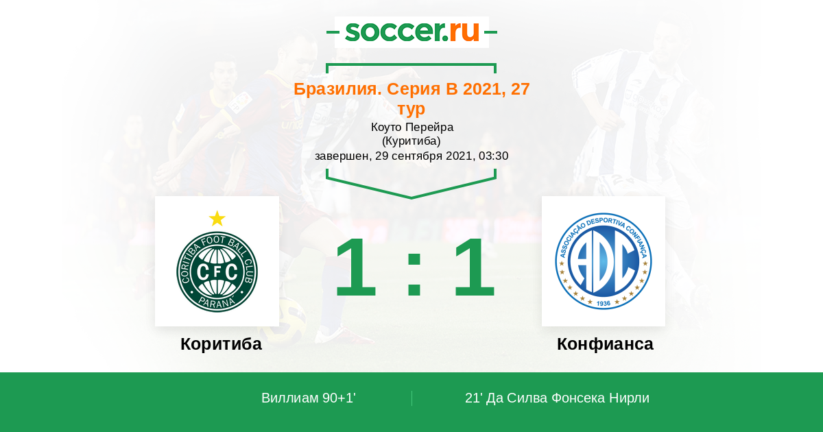 Протокол матча Коритиба против Конфианса