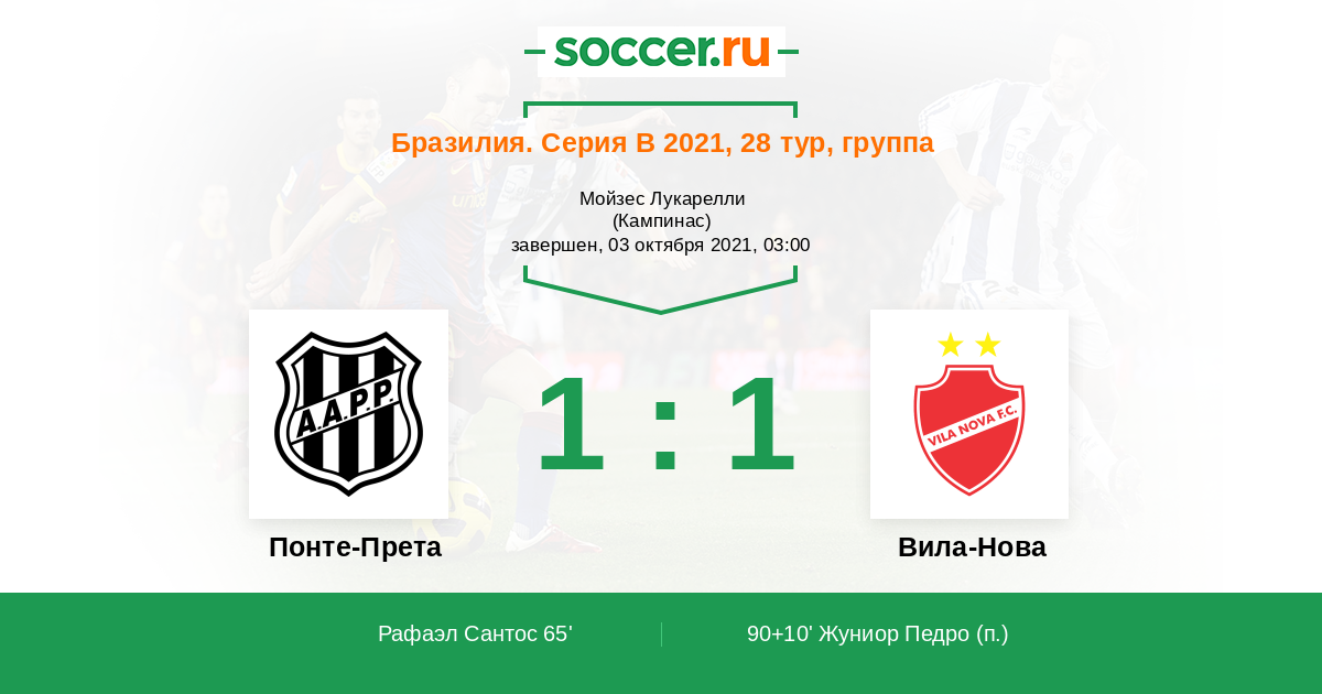 Протокол матча Понте-Прета против Вила-Нова