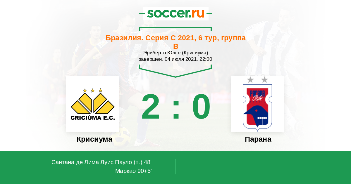 Протокол матча Крисиума против Парана