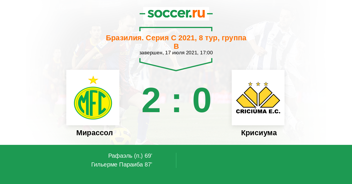 Протокол матча Мирассол против Крисиума