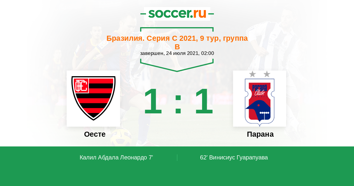 Протокол матча Оесте против Парана