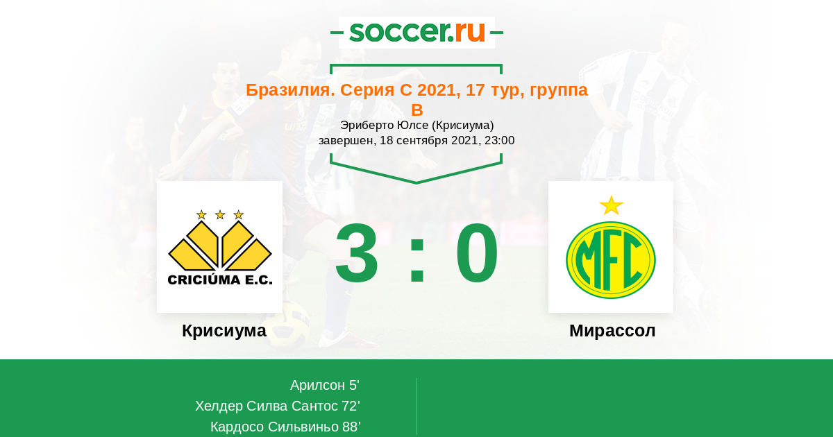 Протокол матча Крисиума против Мирассол