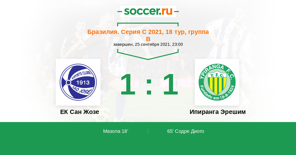 Протокол матча ЕК Сан Жозе против Ипиранга Эрешим