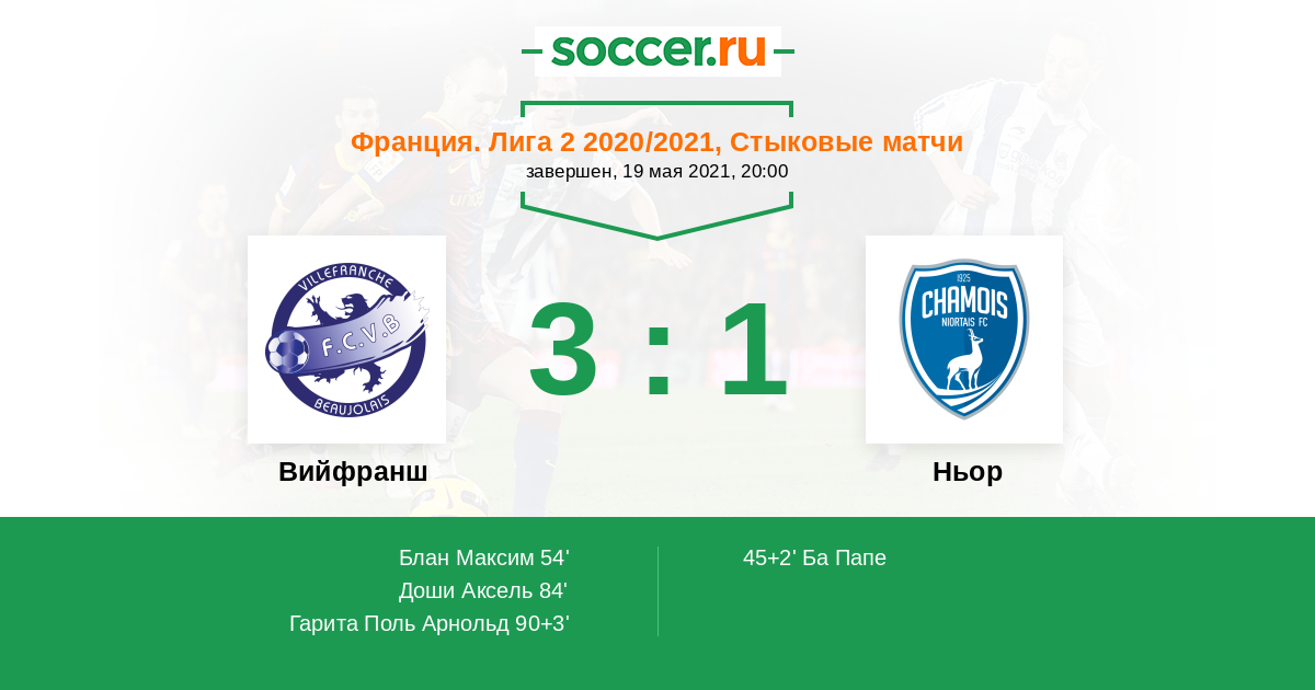 Протокол матча Вийфранш против Ньор
