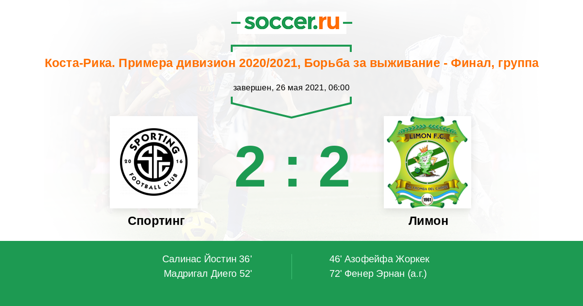 Протокол матча Спортинг Сан-Хосе против Лимон