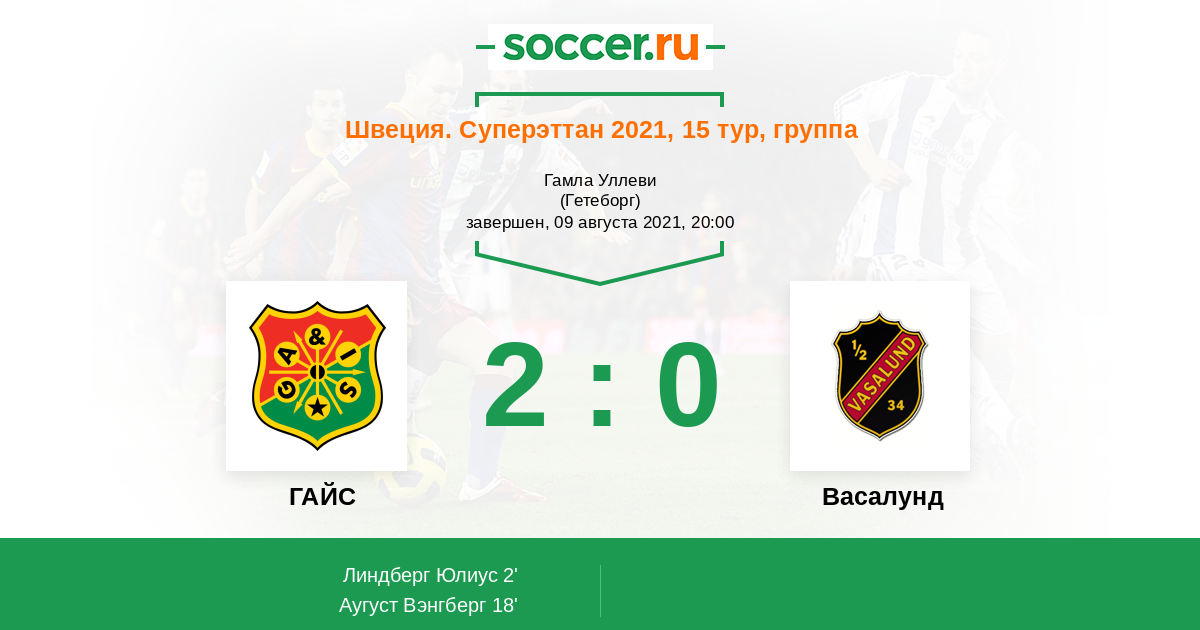 Протокол матча ГАЙС против Васалунд
