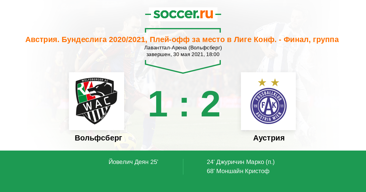 Протокол матча Вольфсберг против Аустрия