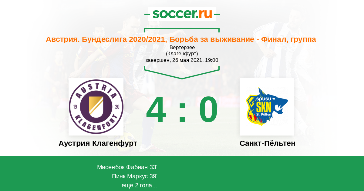 Протокол матча Аустрия Клагенфурт против Санкт-Пёльтен