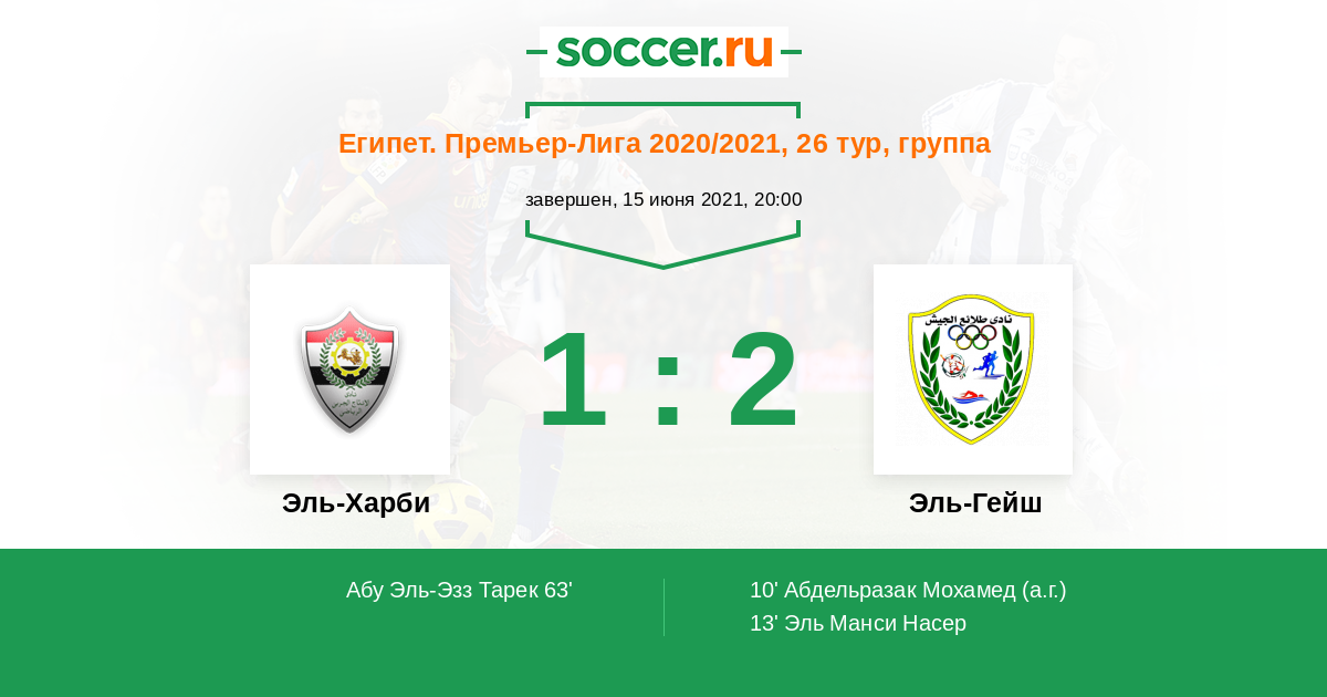 13' (0:2) Эль Манси Насер (9) (Гамал Амр (17))