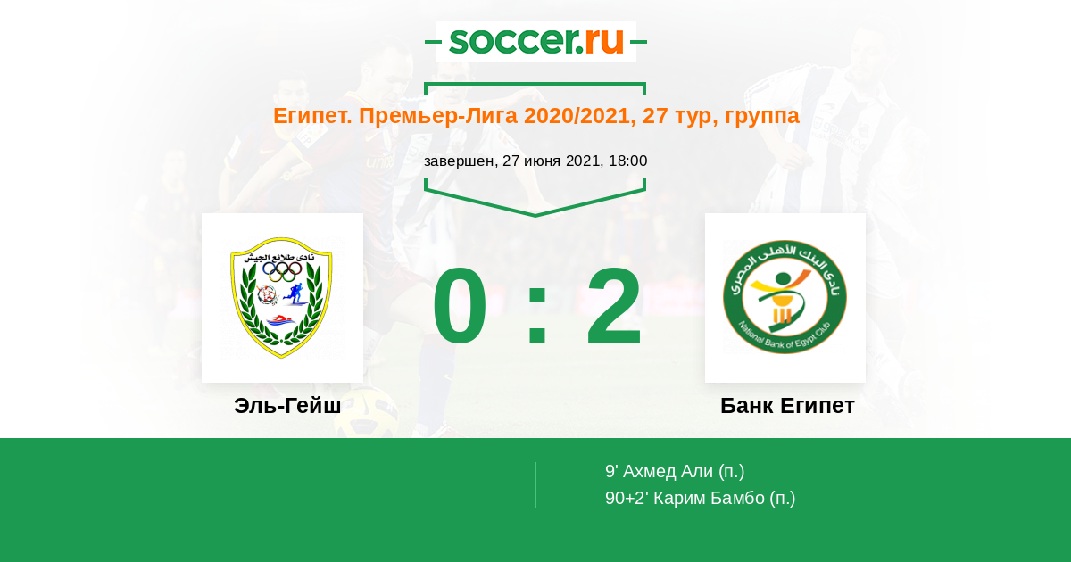 Протокол матча Эль-Гейш против Банк Египет