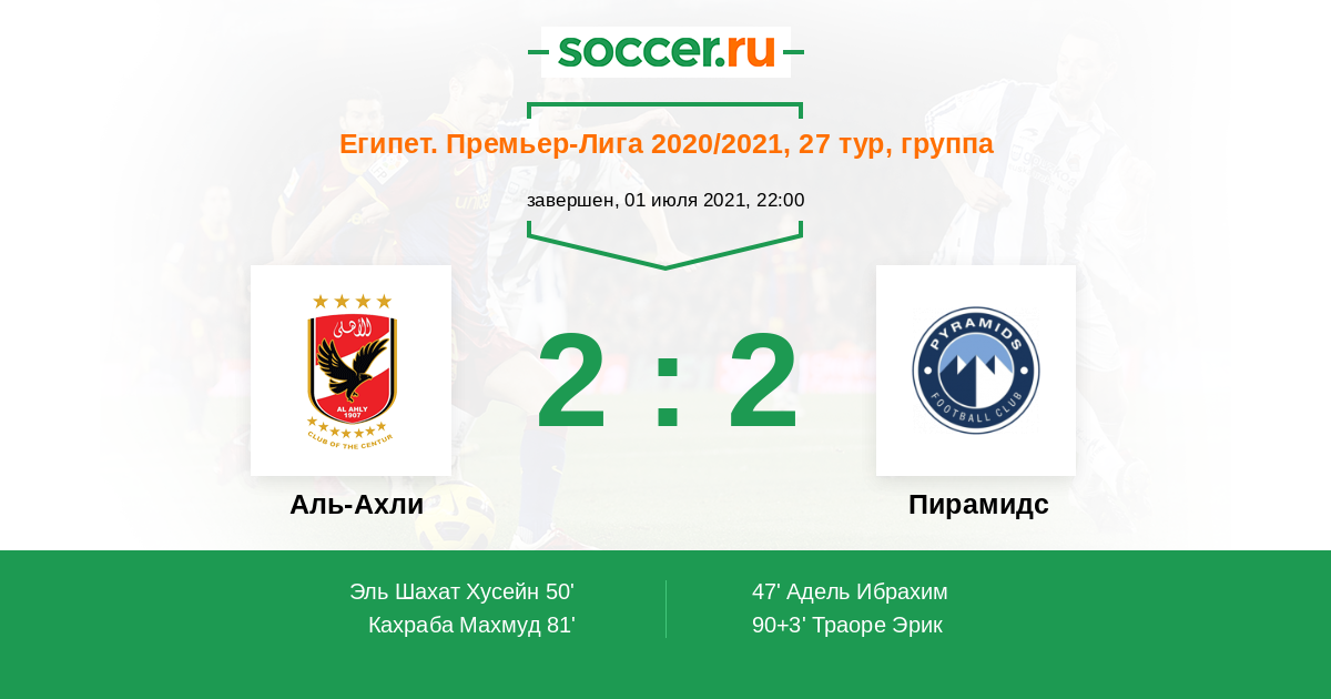 Протокол матча Аль-Ахли против Пирамидс