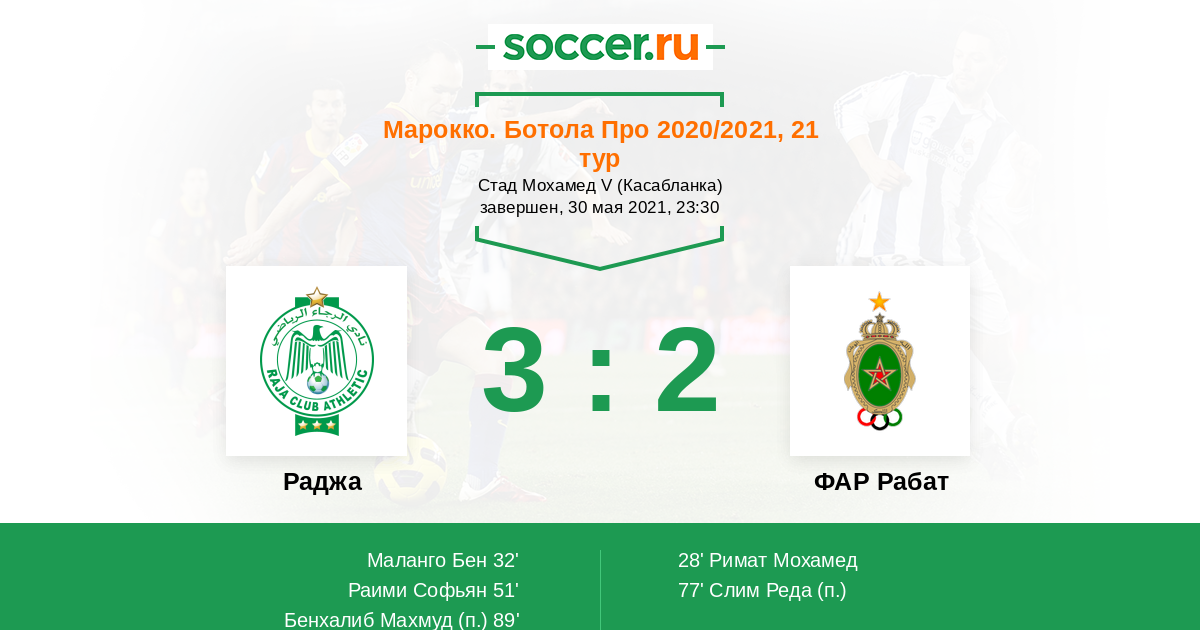 Протокол матча Раджа против ФАР Рабат