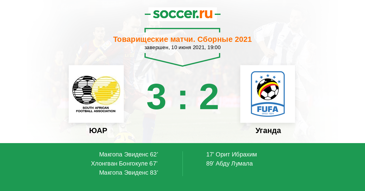 Протокол матча ЮАР против Уганда