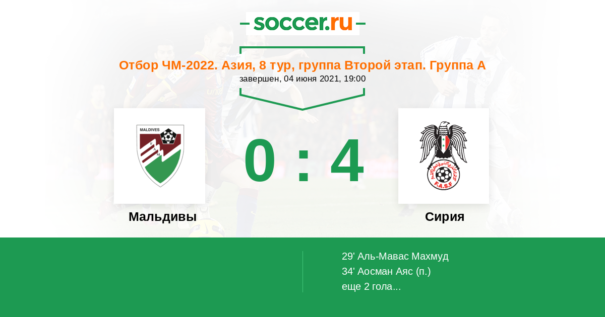 Протокол матча Мальдивы против Сирия