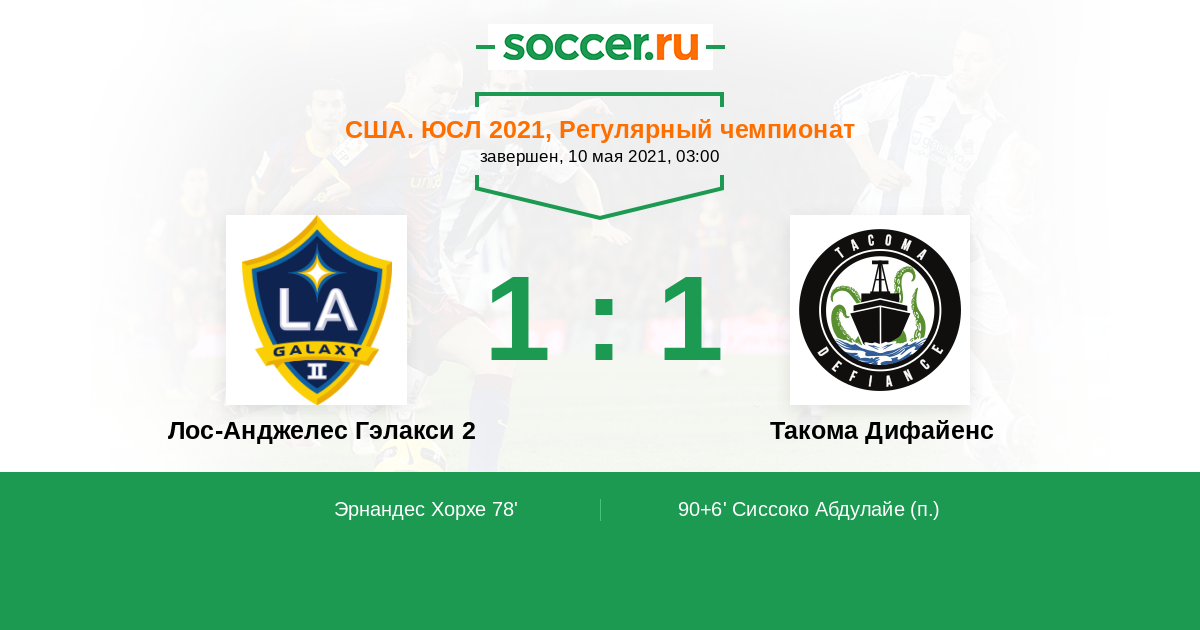 Протокол матча Лос-Анджелес Гэлакси 2 против Такома Дифайенс