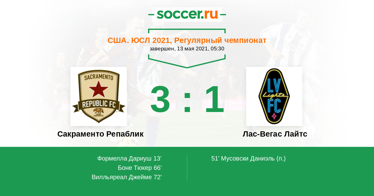 Протокол матча Сакраменто Репаблик против Лас-Вегас Лайтс