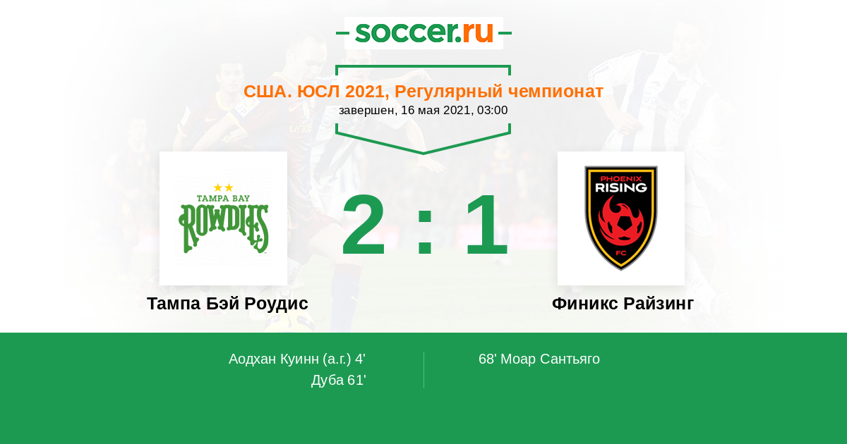 Протокол матча Тампа Бэй Роудис против Финикс Райзинг