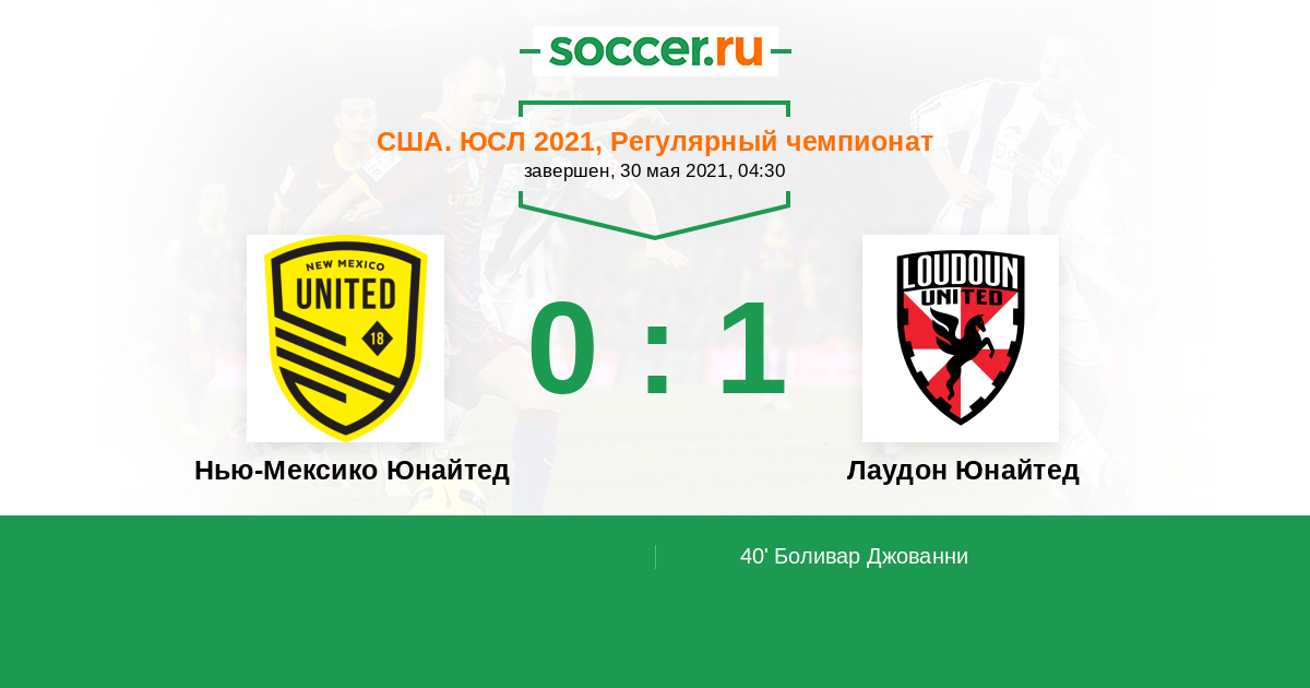 Протокол матча Нью-Мексико Юнайтед против Лаудон Юнайтед