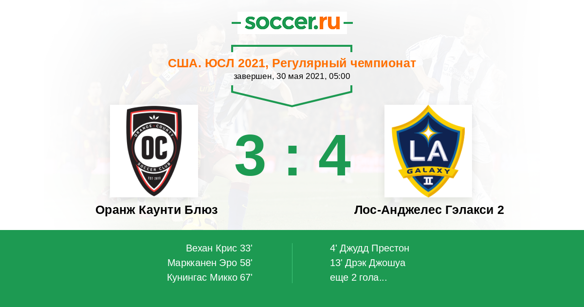 Протокол матча Оранж Каунти Блюз против Лос-Анджелес Гэлакси 2