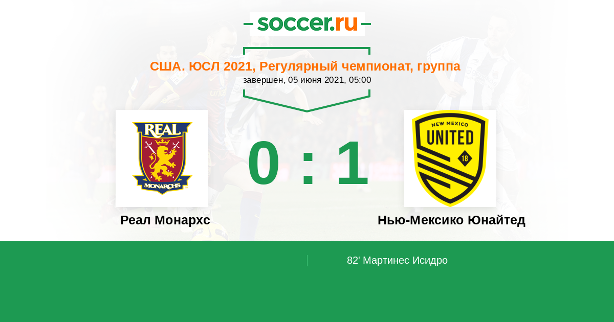 Протокол матча Реал Монархс против Нью-Мексико Юнайтед