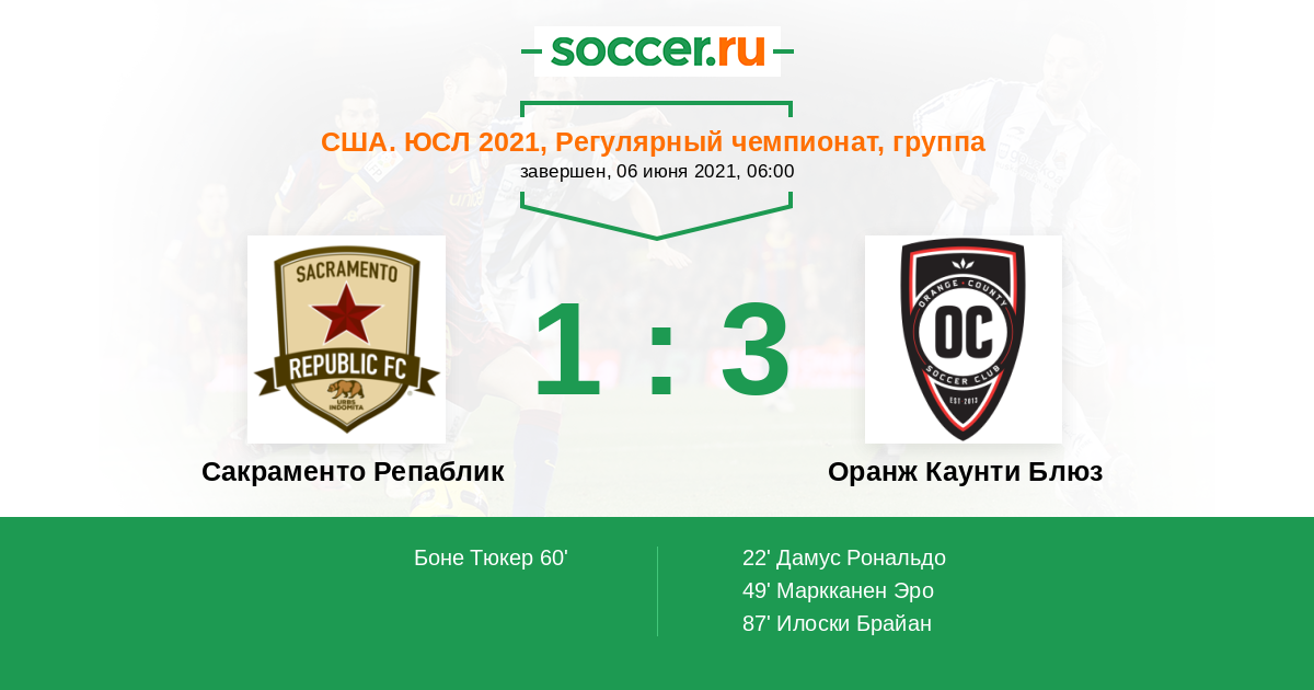 Протокол матча Сакраменто Репаблик против Оранж Каунти Блюз