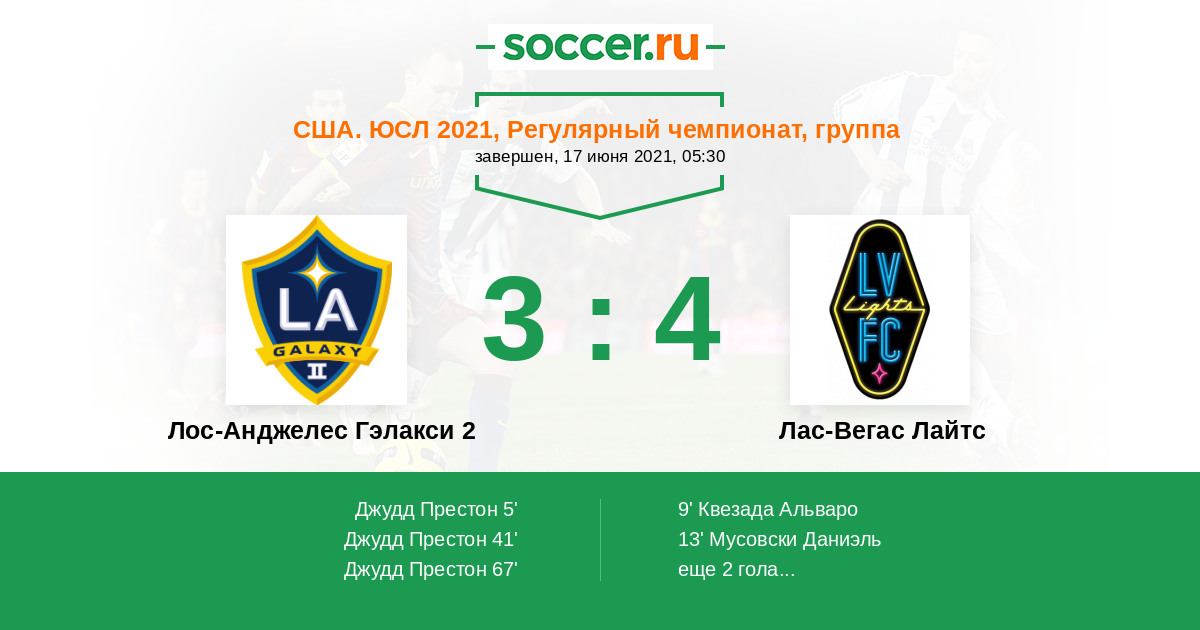 Протокол матча Лос-Анджелес Гэлакси 2 против Лас-Вегас Лайтс