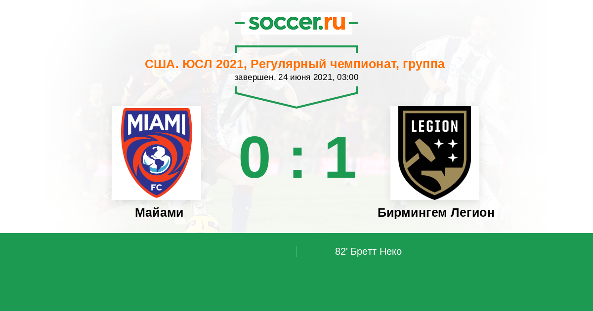 Протокол матча Майами против Бирмингем Легион