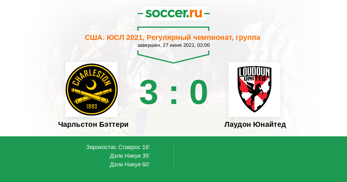 Протокол матча Чарльстон Бэттери против Лаудон Юнайтед