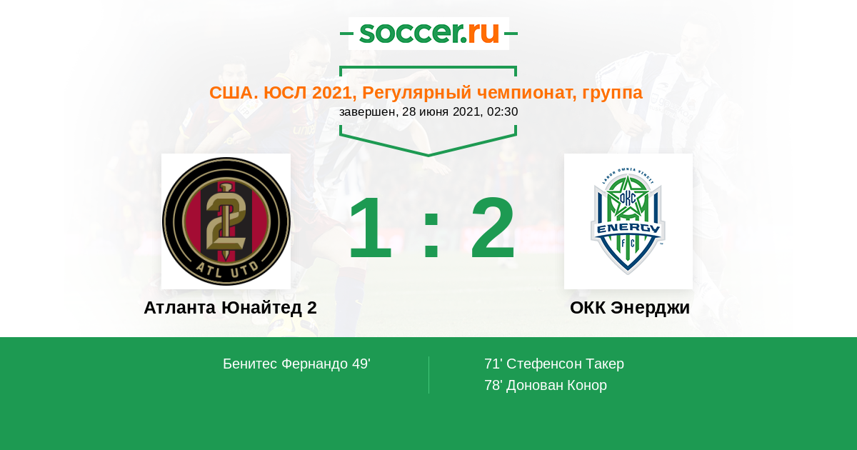 Протокол матча Атланта Юнайтед 2 против ОКК Энерджи