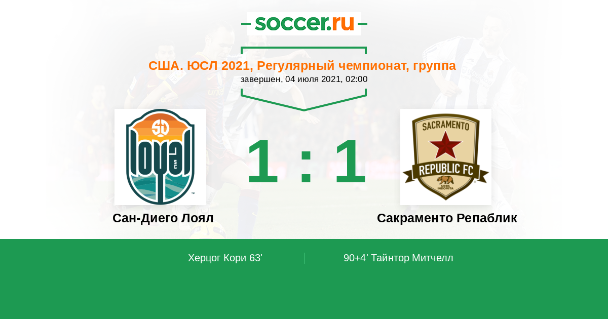 Протокол матча Сан-Диего Лоял против Сакраменто Репаблик