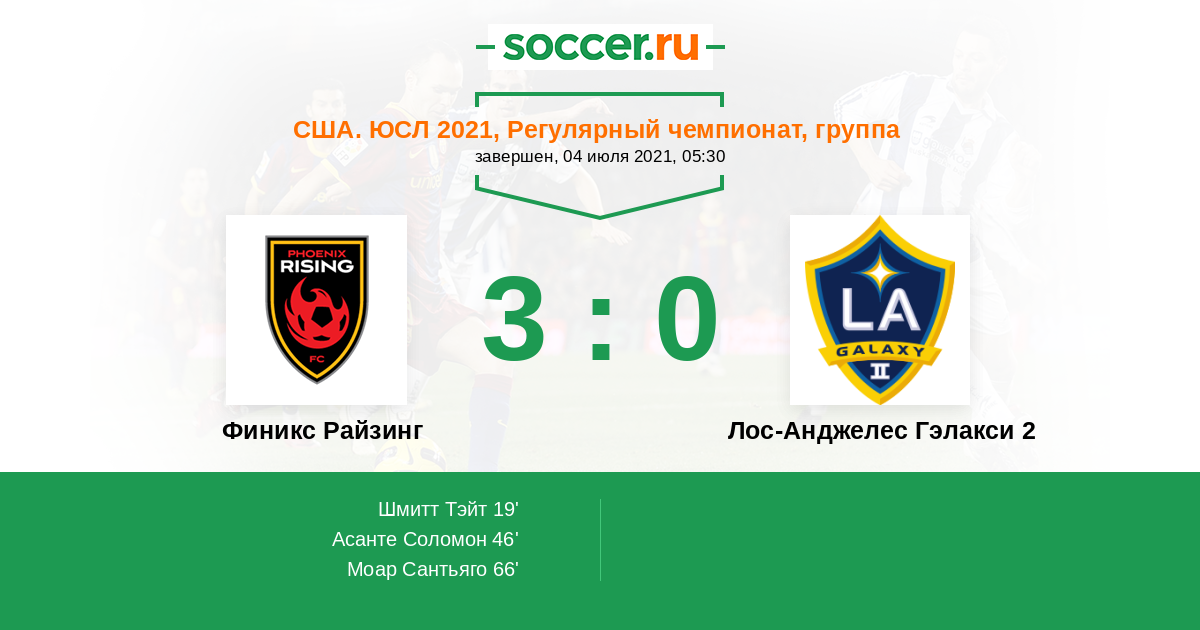 Протокол матча Финикс Райзинг против Лос-Анджелес Гэлакси 2
