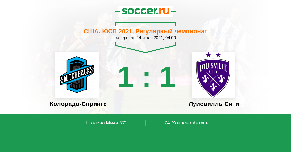 Протокол матча Колорадо-Спрингс против Луисвилль Сити