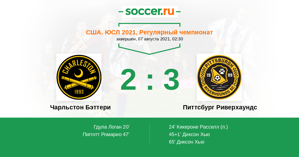 Протокол матча Чарльстон Бэттери против Питтсбург Риверхаундс