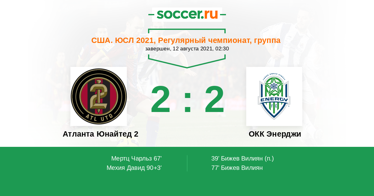 Протокол матча Атланта Юнайтед 2 против ОКК Энерджи