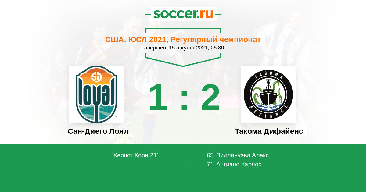 Протокол матча Сан-Диего Лоял против Такома Дифайенс