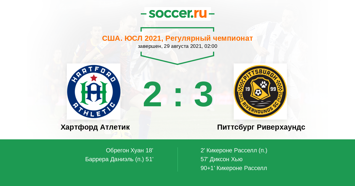 Протокол матча Хартфорд Атлетик против Питтсбург Риверхаундс