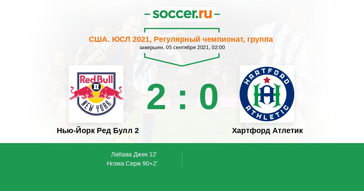 Протокол матча Нью-Йорк Ред Булл 2 против Хартфорд Атлетик