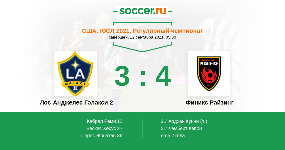 Протокол матча Лос-Анджелес Гэлакси 2 против Финикс Райзинг