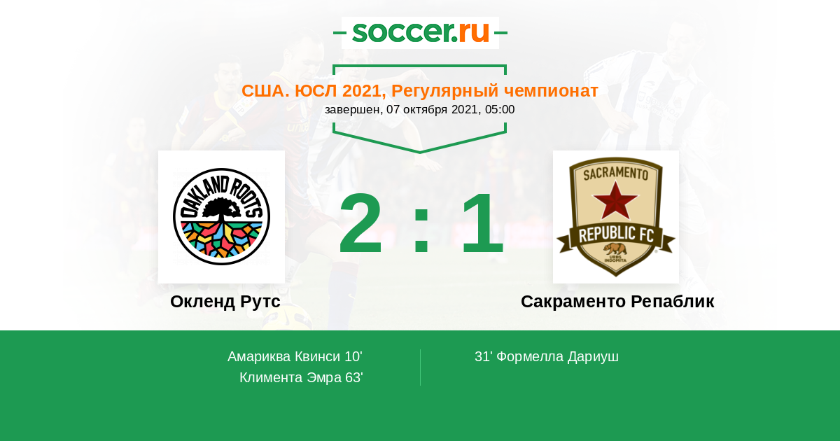 Протокол матча Окленд Рутс против Сакраменто Репаблик