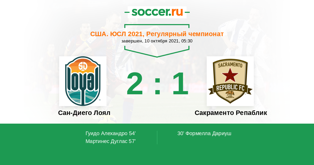 Протокол матча Сан-Диего Лоял против Сакраменто Репаблик