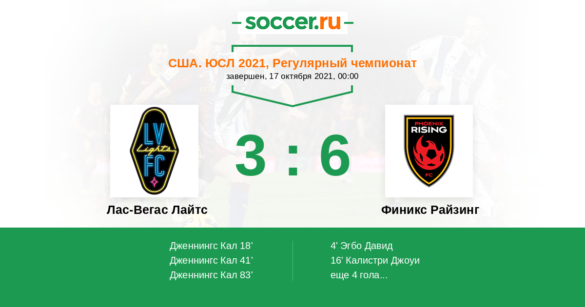 Протокол матча Лас-Вегас Лайтс против Финикс Райзинг
