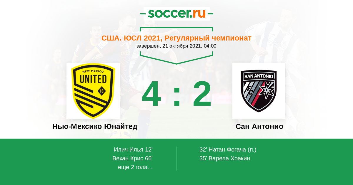 Протокол матча Нью-Мексико Юнайтед против Сан Антонио