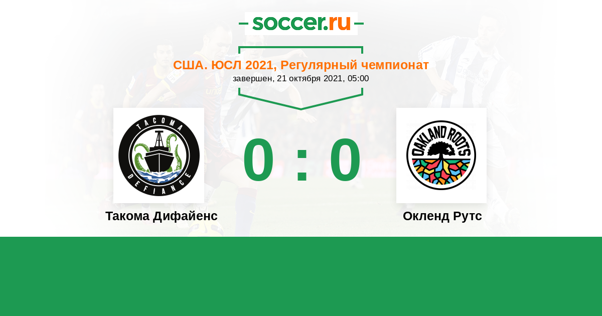 Протокол матча Такома Дифайенс против Окленд Рутс